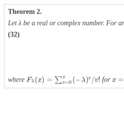 where ${F_{\lambda }}(x)={\textstyle\sum _{v=0}^{x}}{(-\lambda )^{v}}/v!$ for $x=0,1,\dots \hspace{0.1667em}$. A proof of (23) can be found in the Appendix. Substituting the expression (15) for ${\overline{C}_{n}}$ in (6) yields