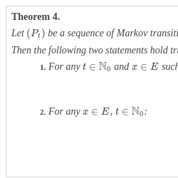 \[\mathbb{P}\{{({X_{n+m}})_{m\ge 0}}\in \cdot |{X_{n}}=x\},\hspace{2.5pt}\text{and}\hspace{2.5pt}\mathbb{P}\{{({X_{k+m}})_{m\ge 0}}\in \cdot |{X_{k}}=x\}\]