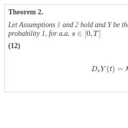 Therefore, by Lemma 1, it is sufficient to prove that ${b^{\prime }_{y}}(t,Y(t))\in {\mathbb{D}^{1,2}}$ with (15) being the corresponding Malliavin derivative.