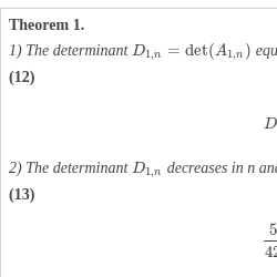 This recurrent formula demonstrates that the determinant ${D_{1,n}}$ decreases in n.