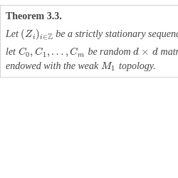 where ${({C_{j}})_{j\ge 0}}$ is a sequence of $d\times d$ matrices (with real-valued random variables as entries) independent of $({Z_{i}})$ such that the above series is a.s. convergent. One sufficient condition for that is ${\textstyle\sum _{j=0}^{\infty }}\mathrm{E}\| {C_{j}}{\| ^{\delta }}\lt \infty $ for some $\delta \lt \alpha $, $0\lt \delta \le 1$ (see Section 4.5 in [13]), where for a $d\times d$ matrix $C=({C_{i,j}})$, $\| C\| $ denotes the operator norm