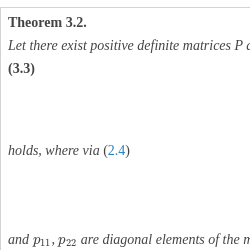 Let there exist positive definite matrices P and R, such that the linear matrix inequality (LMI)