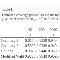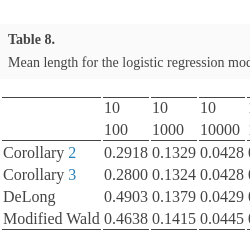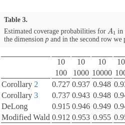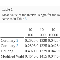 | Modified Wald | 0.4251 | 0.1365 | 0.0432 | 0.2496 | 0.0858 | 0.0272 |