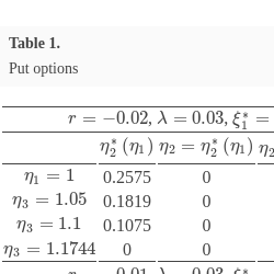 The discount factor λ can be viewed as a dividend rate due to Proposition 2.2 from Zaevski (2025a). It says that if there are dividends payable at rate δ, then this model is equivalent to a nondividend one with parameters $\overline{r}=r-\delta $ and $\overline{\lambda }=\lambda +\delta $ in the sense that both models lead to equal option prices. This parametrization, used in McKean (1965) and Shiryaev et al. (1995), allows some computational facilities. We shall refer to that change of parameters when the use of the classical parametrization with the dividend rate is necessary. We shall distinguish both approaches using the name discount parametrization when the model is defined by asset (1) and payoffs (2)–(3). Alternatively, we shall use the name dividend parametrization when the asset’s drift is compensated by the dividend rate (from r ro $r-\delta $), but the payoffs are undiscounted as in formulas (4)–(5).