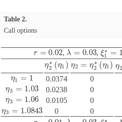 \[ \begin{aligned}{}& {N_{2}}\left(t,x\right)={e^{-\lambda t}}\left[{\eta _{1}}{\left(K-x\right)^{+}}+{\eta _{2}}x+{\eta _{3}}\right],\hspace{3.33333pt}\hspace{3.33333pt}\hspace{3.33333pt}\mathrm{put},\\ {} & {N_{2}}\left(t,x\right)={e^{-\lambda t}}\left[{\eta _{1}}{\left(x-K\right)^{+}}+{\eta _{2}}x+{\eta _{3}}\right],\hspace{3.33333pt}\hspace{3.33333pt}\hspace{3.33333pt}\mathrm{call},\end{aligned}\]