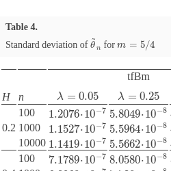 Standard deviation of ${\widetilde{\theta }_{n}}$ for $m=5/4$