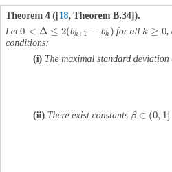 Following [12], consider an increasing sequence $\{{b_{k}},k\ge 0\}$ with ${b_{0}}=0$ and increments satisfying ${b_{k+1}}-{b_{k}}\ge 1$ for all k. Let $a:[0,\infty )\to (0,\infty )$ be an increasing continuous function such that $a(t)\to \infty $ as $t\to \infty $, and define the sequence $\{{a_{k}},k\ge 0\}$ by ${a_{k}}=a({b_{k}})$.