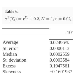 Table 7 presents the results of calculations. Comparison of two approaches reveals that the Euler–Maruyama scheme provides a good approximation for the exact option price. In the case of fast mean-reversion, the results coincide when rounded to sixth digit.
