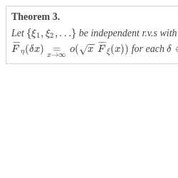 As we can see, the r.v.s $\{\xi _{1},\xi _{2},\dots \}$ from the last example satisfy the conditions of Theorem 6, whereas the third condition of Theorem 4 does not hold because, in this case,