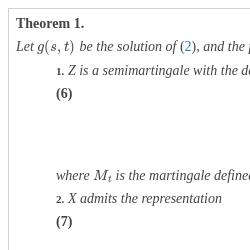 Let $g(s,t)$ be the solution of (2), and the process Z be defined by (5). Then the following assertions hold: