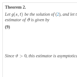 Let $g(s,t)$ be the solution of (2), and let the processes Q and Z be defined by (4) and (5), respectively. The maximum likelihood estimator of ϑ is given by