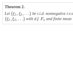 for $K\geqslant a$.Letting K tend to infinity, we get the desired estimate (6) because $\mathbb{E}\eta <\infty $ by conditions (c) and (d). The theorem is proved. □