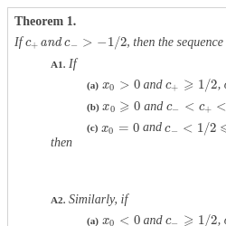 \[ \varphi (x)\sim \left\{\begin{array}{l@{\hskip10.0pt}l}\pm A(\pm \infty )\frac{|x{|}^{1-2c_{\pm }}}{1-2c_{\pm }}\hspace{1em}& \hspace{2.5pt}\text{if}\hspace{2.5pt}\hspace{2.5pt}c_{\pm }<1/2,\\{} \pm A(\pm \infty )\ln |x|\hspace{1em}& \hspace{2.5pt}\text{if}\hspace{2.5pt}\hspace{2.5pt}c_{\pm }=1/2,\end{array}\right.\hspace{1em}x\to \pm \infty ,\]Condition (12) follows from (14), (15), (16), (17), (18) in cases A1–A5 (and in case A6 if $x_{n}=0,\hspace{2.5pt}n\geqslant 0$).