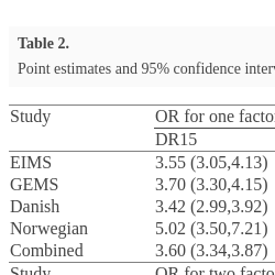 | Norwegian | undefined | 3.31 (1.50,7.32) | 1.31 (0.62,2.76) |