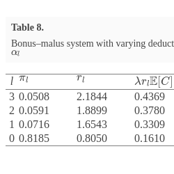 An alternative approach, which, at least theoretically, eliminates the second drawback, is proposed by Holtan [9]. He suggests the use of very high deductibles that may be borrowed by the policyholders in the insurance company. The deductibles are assumed to be constant for all policyholders, i.e. independent of the level they occupy in the bonus–malus system at the time of claim occurrence. Although technically acceptable, this approach obviously causes considerable practical problems. Practical consequences of Holtan’s proposal are investigated by Lemaire and Zi [11]. Particularly, it is shown that the introduction of high deductibles increases the variability of payments and the efficiency of the rating systems for most policyholders.